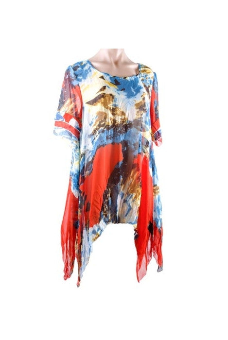 Top - Filo - Detailed Sleeves - Swing Sides - Orange Based Multi Coloured